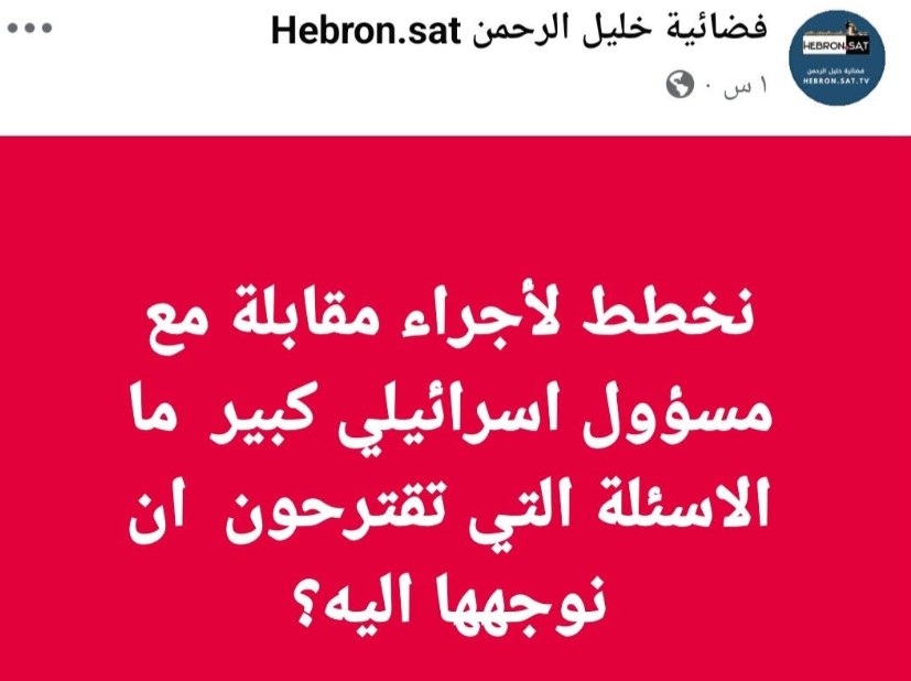 ونشرت صفحة الفضائية على فيسبوك إعلاناً قالت فيه: “نخطط لإجراء مقابلة مع مسؤول إسرائيلي كبير، ما الأسئلة التي تقترحون أن نوجهها إليه؟”.