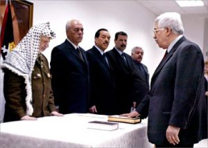 وقد بدت ملامح الغضب باديةً على الرئيس عرفات خلال حلف عباس لليمين أثناء تنصيبه كرئيساً للحكومة الفلسطينية، إذ كان يعلم أن الغرب وبعض الدول العربية تخطط إزاحته من المشهد ووضع عباس بدلاً منه.