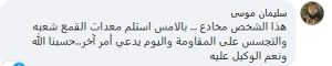 وكتب المواطن سليمان موسى، ناقما على عباس ومحاولته خداع الشعب الفلسطيني، وعلق قائلا: “هذا الشخص مخادع … بالأمس استلم معدات القمع شعبه والتجسس على المقاومة واليوم يدعي أمر آخر…حسبنا الله ونعم الوكيل عليه”.