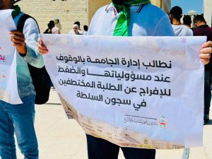 وطالب المشاركون في الوقفة بوقف سياسة الاعتقـال السياسي التي تمارسها أجهزة السلطة ضد طلبة الجامعة، حيث أكدوا على دعمهم لزملائهم المعتصمين حتى نيل المطالب وتحقيق العدالة.