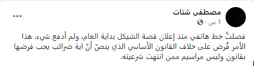 أما الحقوقي مصطفى شتات، فدعا الى فصل خطوط الهاتف وعدم منح السلطة لتلك التبرعات، وعلق قائلا: “فصلتُ خط هاتفي منذ إعلان قصة الشيكل بداية العام، ولم أدفع شيء. هذا الأمر فُرض على خلاف القانون الأساسي الذي ينصّ أنّ اية ضرائب يجب فرضها بقانون وليس مراسيم ممن انتهت شرعيته”.