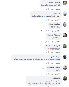 أما حمود العقاد فراح يقول: “يا سلام على الشعب اللي فايت غيبوبة.. يعني أنتو اليوم أدريتو أنو تم خصم واحد شيكل.. هيك بتكون سرقة الشعب النائم بأحتراف.. لا بارك الله لكما.. ولا بارك عليكم وجمع بينكم بمقبرة واحده عن قريب شركاتنا الفاسدين المختلسين”.