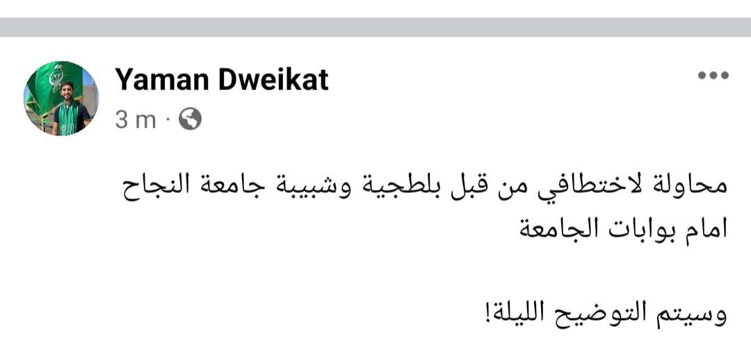 اعتدوا على الطلبة.. بالأسماء: زعران الشبيبة يحاولون اختطاف ممثل الكتلة في جامعة النجاح