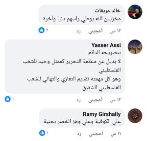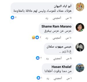 رامي محمد بدوره اكتفى بعبارة: “حسبي الله ونعم الوكيل”؛ أما أبو إياد نبهان فكتب: “هؤلاء عملاء للموساد وليس لهم علاقة بالمقاومة”.