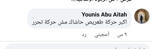 الناشط يونس أبو عيطة الذي أبدى تذمرا واسعا من المشاركة قال: اكبر حركة طعريص.. حاشاك مش حركة تحرر”؛ وأكمل عنه ياسر عاصي: “بتصريحه الدائم لا بديل عن منظمة التحرير كممثل وحيد للشعب الفلسطيني.. وهو كل مهمته تقديم التعازي والتهاني للشعب الفلسطيني الشقيق”.