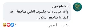 أما المواطنة المغتربة شعاع جرار، فعبرت عن خيبة أملها من عدم مقاطعة فروع كنتاكي، وعلقت بقولها:”والله عيب. والله بالسويد الناس مقاطعة ١٠٠٪ كيف ما يقاطعوا ببلادنا”.