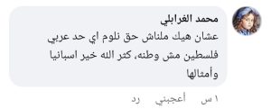 أما المواطن محمد الغرابلي، فأشار إلى أن هذا الموقف لا ينسجم مع التوجه العالمي لمقاطعة الاحتلال،وعلق قائلاً:”عشان هيك ملناش حق نلوم اي حد عربي فلسطين مش وطنه، كثر الله خير اسبانيا وأمثالها”.