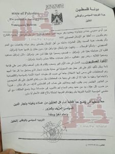 تحريض ودعوة للحرب الأهلية.. هيئة التوجيه في الخليل تدعو عناصر الأمن لقتل المقاومين