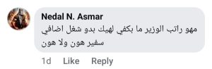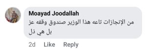 أما المواطن مهند جود الله، فاستذكر فساد أبو جيش في فضائح صندوق وقفة عز، وعلق قائلاً:”من الإنجازات تاعه هذا الوزير صندوق وقفه عز بل هي ذل”.