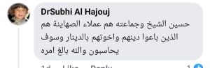 أما د. صبحي الحجوج، فأكد أن حسين الشيخ يتزعم قائمة العملاء الذين يعملون مع الاحتلال ضد مصالح الشعب الفلسطيني، وعلق قائلاً:”حسين الشيخ وجماعته هم عملاء الصهاينة هم الذين باعوا دينهم واخوتهم بالدينار وسوف يحاسبون والله بالغ امرهـ”.