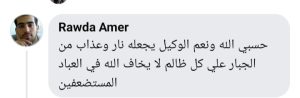 وكتب المواطن محمد حسين، ناقماً على حسين الشيخ وأقاربه، وعلق قائلاً:”الله يكون في عونكم اخي الكريم …فعند الله تجتمع الخصوم”.