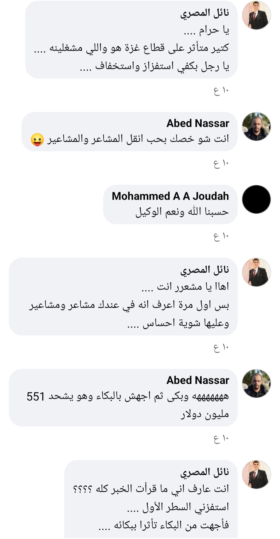 فقد نشر النشطاء تصريحاً صحفياً عممه مكتب مصطفى عام 2014، عندما شغل منصب وزير الاقتصاد ونائب رئيس الوزراء، والذي جاء فيه إن “مصطفى بكى مرتين وهو يتحدث مع المانحين من أجل جلب دعم مالي لإعادة إعمار قطاع غزة بعد الحرب التي استمرت آنذاك 51 يوماً”.