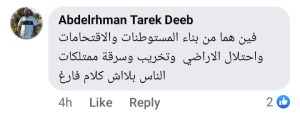 أما المواطن عبد الرحمن طارق ديب، فتساءل عن سبب غياب أجهزة السلطة التي تزعم حرصها على أمن المواطن، وعلق قائلاً:”فين هما من بناء المستوطنات والاقتحامات واحتلال الاراضي وتخريب وسرقة ممتلكات الناس بلااش كلام فارغ”.