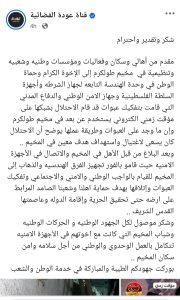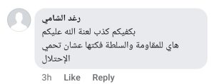 أما المواطنة رغد الشامي، فطالبت إعلام فتح بالتوقف عن الكذب وملاحقة المقاومين،وعلق بقولها:”بكفيكم كذب لعنة الله عليكم.. هاي للمقاومة والسلطة فكتها عشان تحمي الإحتلال”.