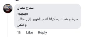 أما المواطنة سماح عثمان، فسخرت من تصريح سابق لمحمود الهباش، وعلق قائلا:”ههههههه.. حيطلع هظاك يحكيلنا انتم ذاهبون إلى هناك. وخلص”.