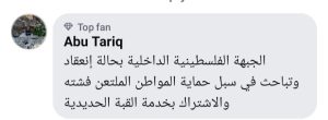 أما المواطن ابو طارق، فسخر من غياب السلطة ومؤسساتها، وعلق قائلاً:”الجبهة الفلسطينية الداخلية بحالة إنعقاد وتباحث في سبل حماية المواطن الملتعن فشته والاشتراك بخدمة القبة الحديدية”.