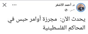 وكتب الخبير القانوني د. أحمد الأشقر ، مستغرباً مثل هذا القرار في هذا التوقيت، وعلق عبر حسابه على فيسبوك قائلا: “يحدث الان .. مجزرة أوامر حبس في المحاكم الفلسطينية”.