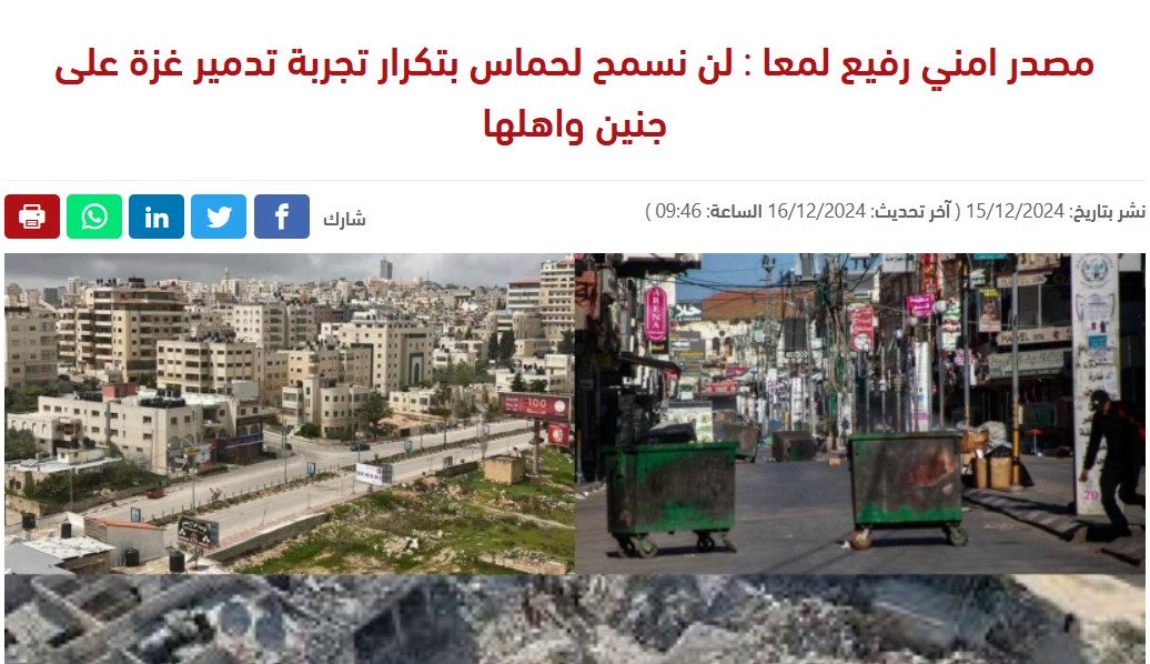 وقال المصدر الأمني: “ما نفعله في جنين هو أهم من كل الشعارات الشعبوية التي ترفعها حماس لتضليل أهل الضفة”.