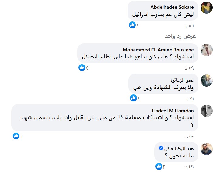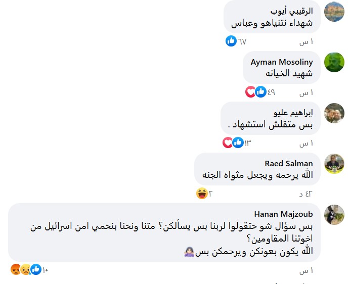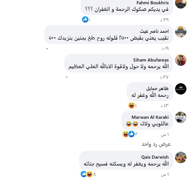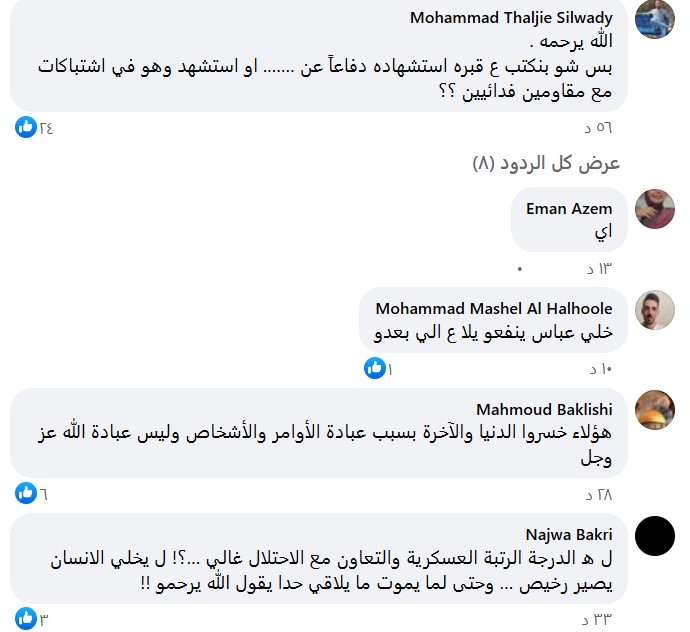وعلق الشارع الفلسطيني على النعي بالقول: “إن الشهادة لا تطلق على من يقوم بقتل أبناء شعبه، ويقف إلى جانب المحتل”.