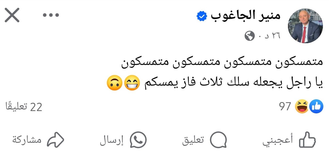 الجاغوب لا يمرر يوم أو يومين إلا ويشن هو وذباب فتح الإلكتروني هجوماً المقاومة، فبينما كانت جموع الشعب الفلسطيني تستقبل الأسرى المحررين في الضفة الغربية قبل أسابيع، كان الجاغوب بسير عكس تيار الشعب الفلسطيني عبر الإساءة للمقاومة.