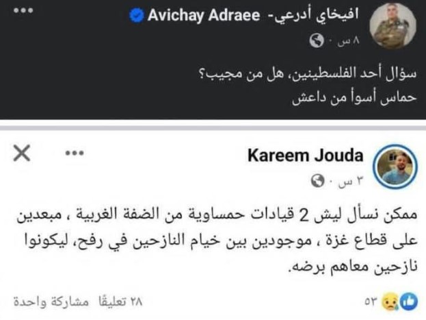 وأشار إلى أن بعضهم وبينهم صفحة تتبع لجهة رسمية تعطي معلومات للاحتلال عن أشخاص أو مواقع تم استهدافها من جيش الاحتلال.